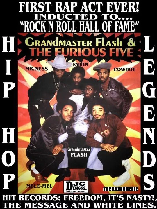1976ൽ, ഗ്രാൻഡ്മാസ്റ്റർ ഫ്ലാഷ്, കൗബോയ്, മെല്ലെ മെൽ, കിഡ്, ക്രിയോൾ, സ്കോർപിയോ, റഹൈം എന്നിവർ ബ്രോങ്ക്സ് ആസ്ഥാനമാക്കി രൂപം കൊടുത്ത, ‘ഗ്രാൻഡ്മാസ്റ്റർ ഫ്ലാഷ് ആൻഡ് ദി ഫ്യൂരിയസ് ഫൈവ്’ എന്ന റാപ്പ് സംഘം ഏറ്റവും കൂടുതൽ ലോകശ്രദ്ധ നേടിയ ഒന്നാണ്. ഇവരുടെ, ‘ദി മെസ്സേജ്’ എന്ന സാമൂഹിക വിമർശന റാപ്പാണ് ഈ ടീമിനെ ശ്രദ്ധേയമാക്കിയത്.